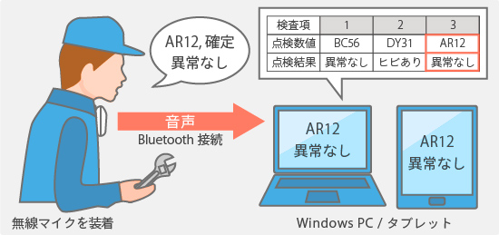 認識した音声をアンサーバックで確認しながら作業